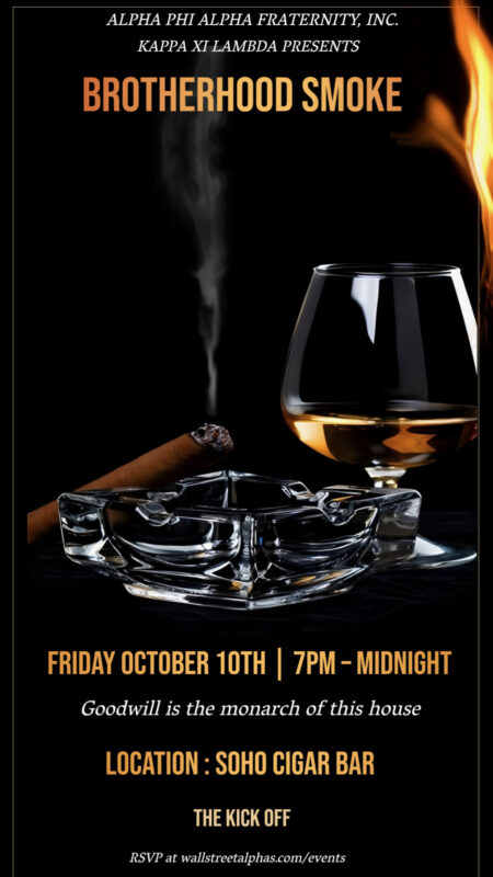 Alpha Phi Alpha Fraternity, Inc. Kappa Xi Lambda Chapter invites all brothers of Alpha to attend our chapter meetings beginning in September on the second Tuesday of each month at 7pm. Please email contact@wallstreetalphas.com to RSVP.